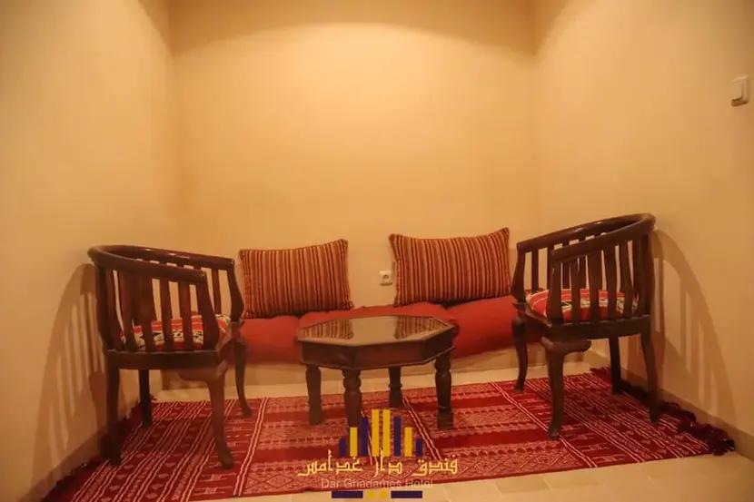 - فندق دار غدامس يتميز بتصميمه المعماري المتناغم مع طراز مدينة غدامس التاريخية، ويوفر جميع الخدمات الفندقية اللازمة لضمان إقامة مريحة وممتعة للنزلاء. تفاصيل الغرف والأسعار: الغرف الفردية: 12 غرفة، بسعر 140 دينار ليبي لليلة الغرف الزوجية: 12 غرفة، بسعر 180 دينار ليبي لليلة والأجنحة: 4 أجنحة بسعر 270 دينار ليبي لليلة