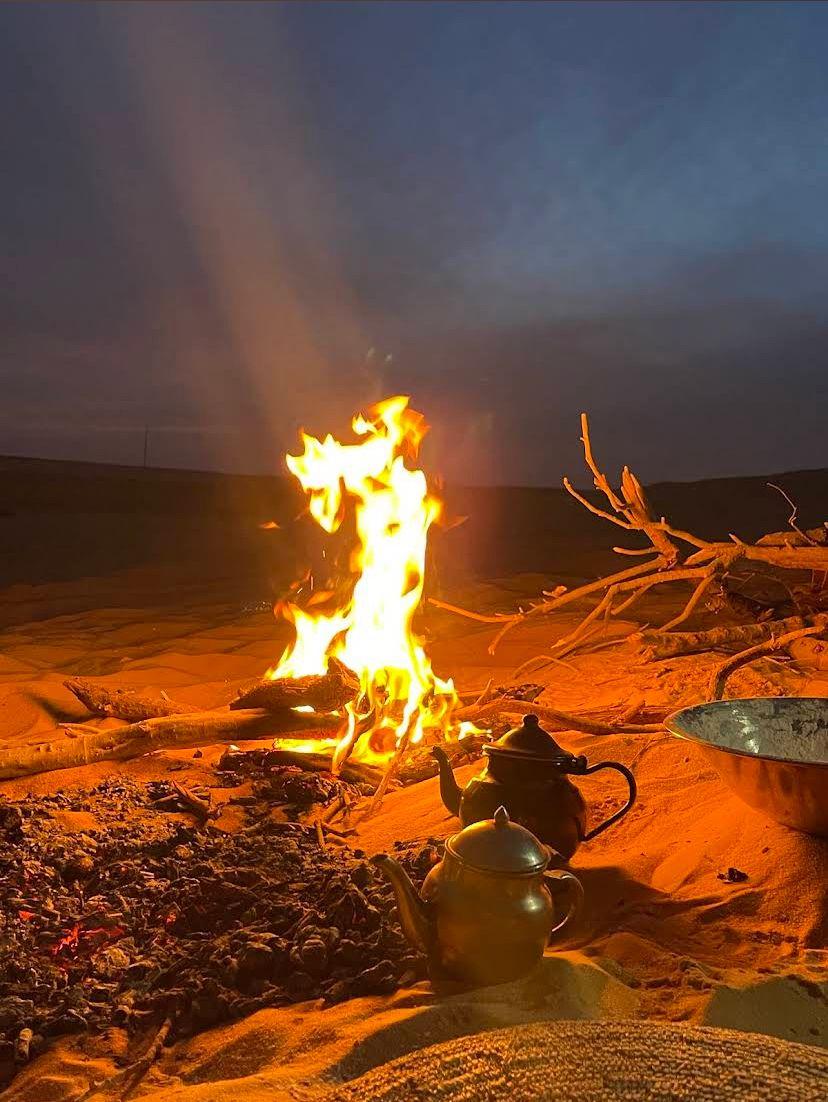 • التوقف في المخيم: بعد جولة في الرمال، ستصل إلى مخيم صحراوي مريح، حيث ستتمتع بجلسة تقليدية حول النار.